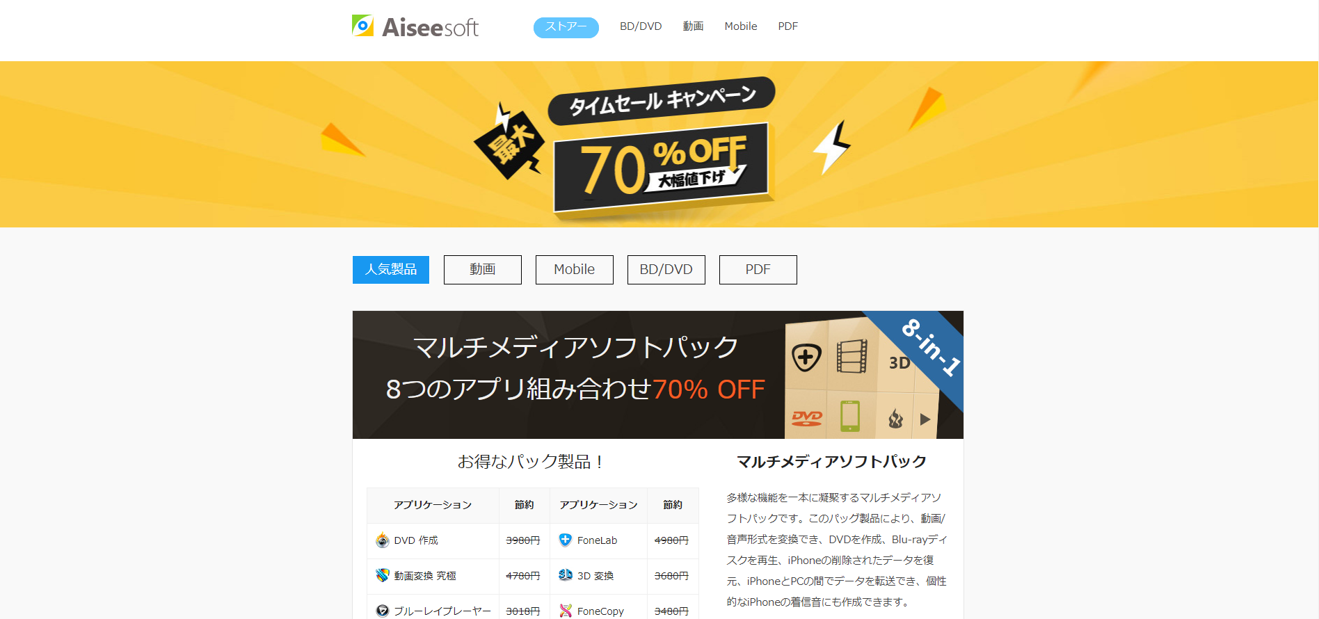 公式サイトはこちら AiseesoftについてAiseesoftは、動画変換、動画編集、データ復元などのソフトウェアを提供するソフトウェア会社です。・ブルーレイプレーヤー ・動画変換ソフト ・データ復元ソフト ・データ転送ソフト 他にも多数のソフトを販売しております。商品名AiseesoftカテゴリUncategorized