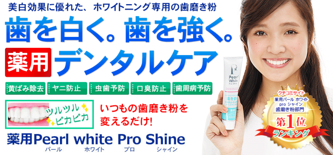 公式サイトはこちら 薬用パールホワイトプロシャインとは薬用パールホワイトプロ シャインは、紅茶やコーヒーのステイン・タバコのヤニ汚れなどを除去し、歯の表面をコーティング。さらに、虫歯防止に加え、口臭や歯周病も防止する優れものです。製薬会社と共同開発したホワイトニング専用歯みがき粉です。口コミサイトで1位を獲得して、消費者から満足度の高い商品です。税込10,000円で送料無料&決済手数料無料なのでまとめ買いや複数購入が非常におすすめ!商品名薬用パールホワイトプロシャインカテゴリホワイトニング