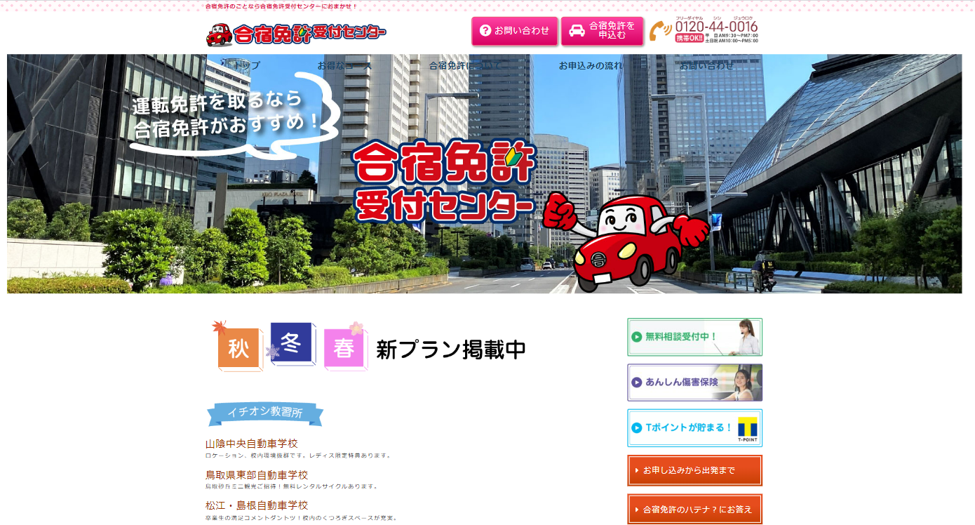 日本全国から申し込みができ、温泉旅行を兼ねて運転免許を取得するのもよし、
